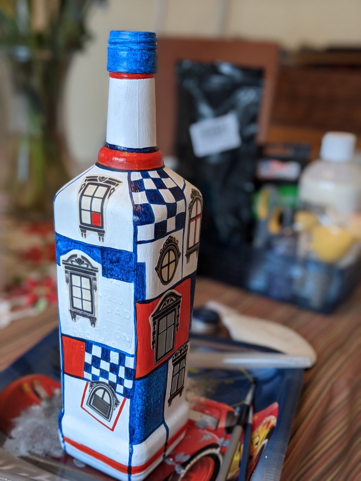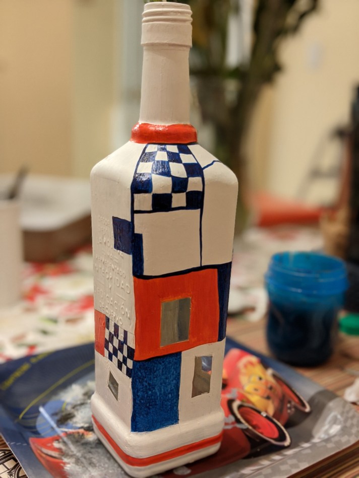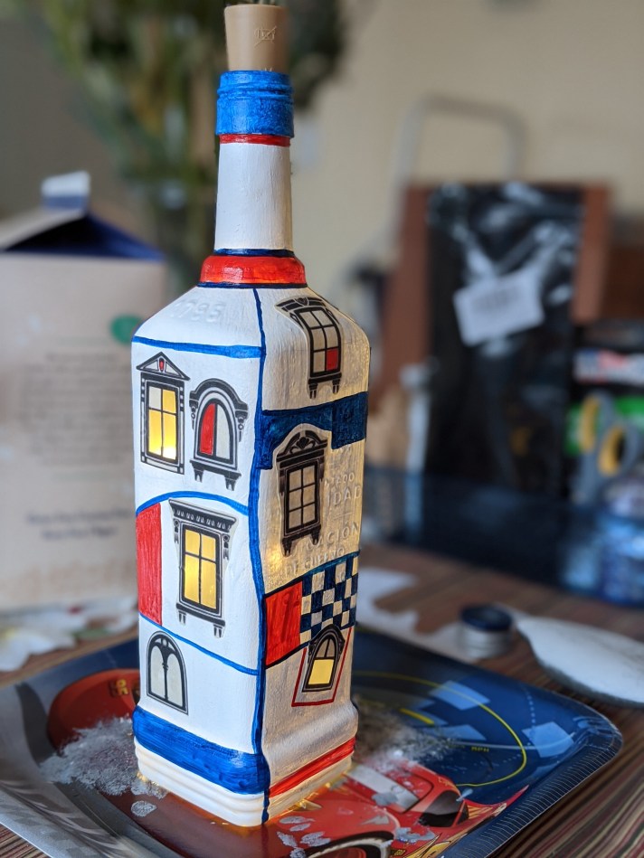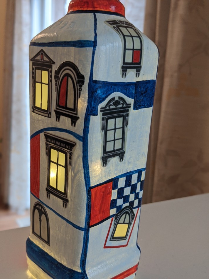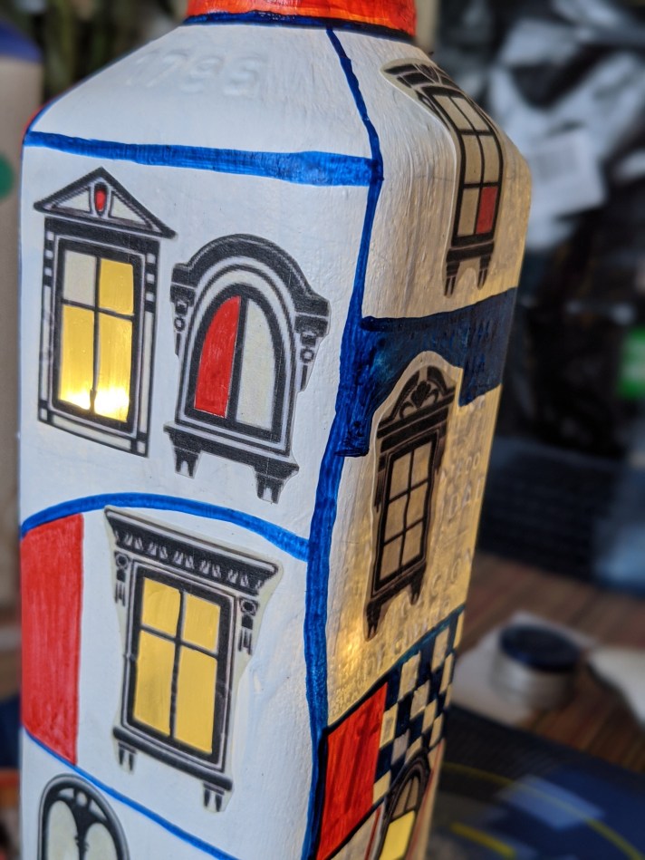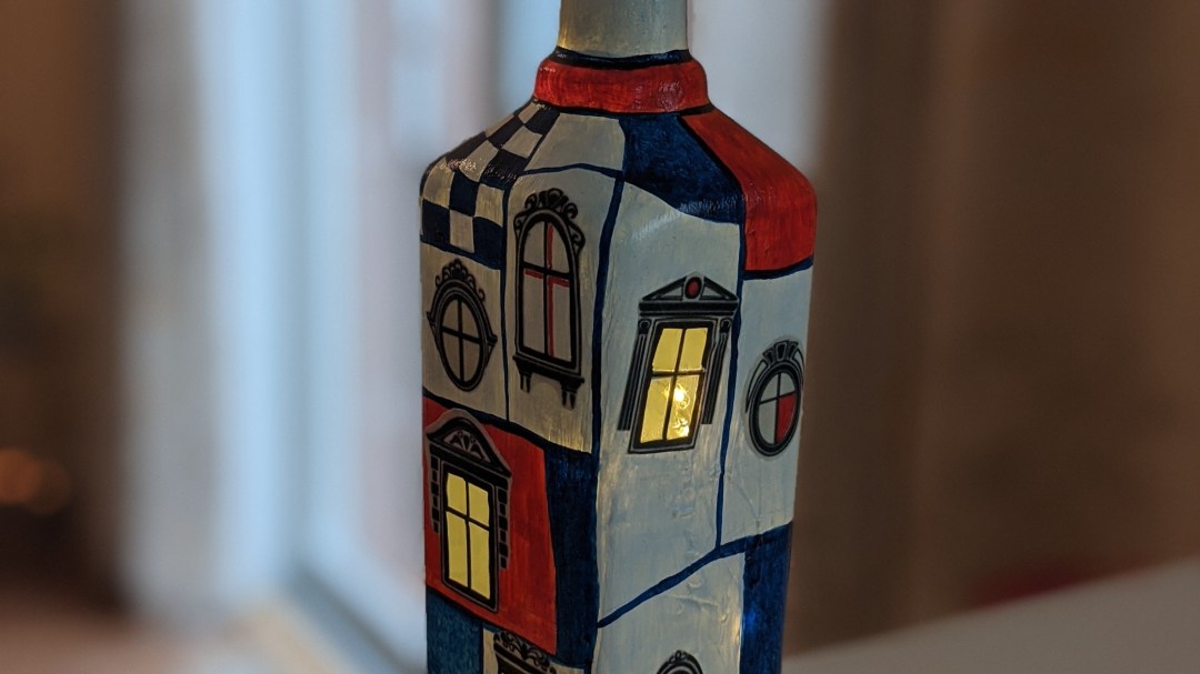 And another fun decoupage project for kids & adults is done! It is a bottle-lantern based on the architecture of Friedensreich Hundertwasser, 20th century European visual artist and architect. A combination of art & architecture always makes every project unique and educational!