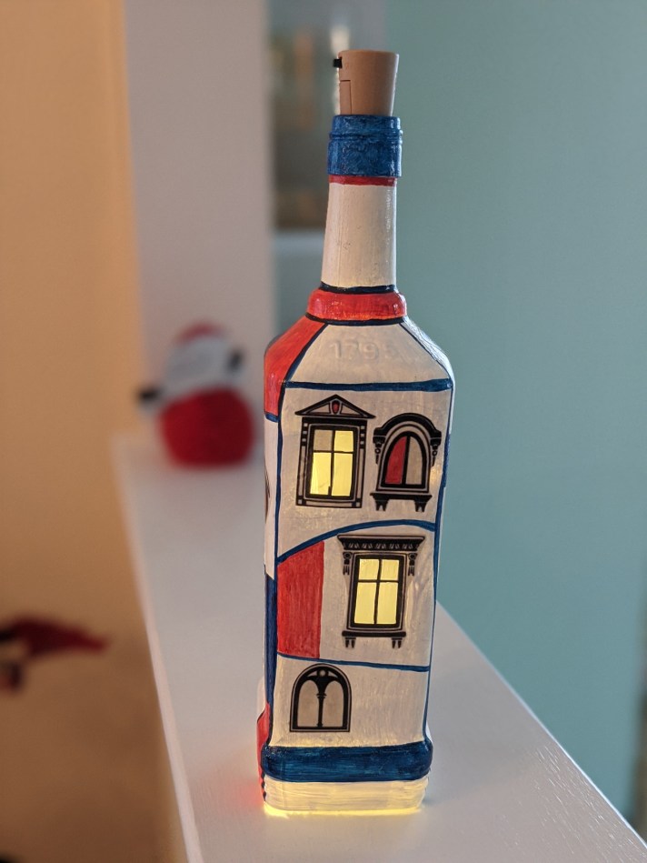 Step. 6 I had some bottle string lights at home, so I used them to make an effect of inside light in the bottle 🙂