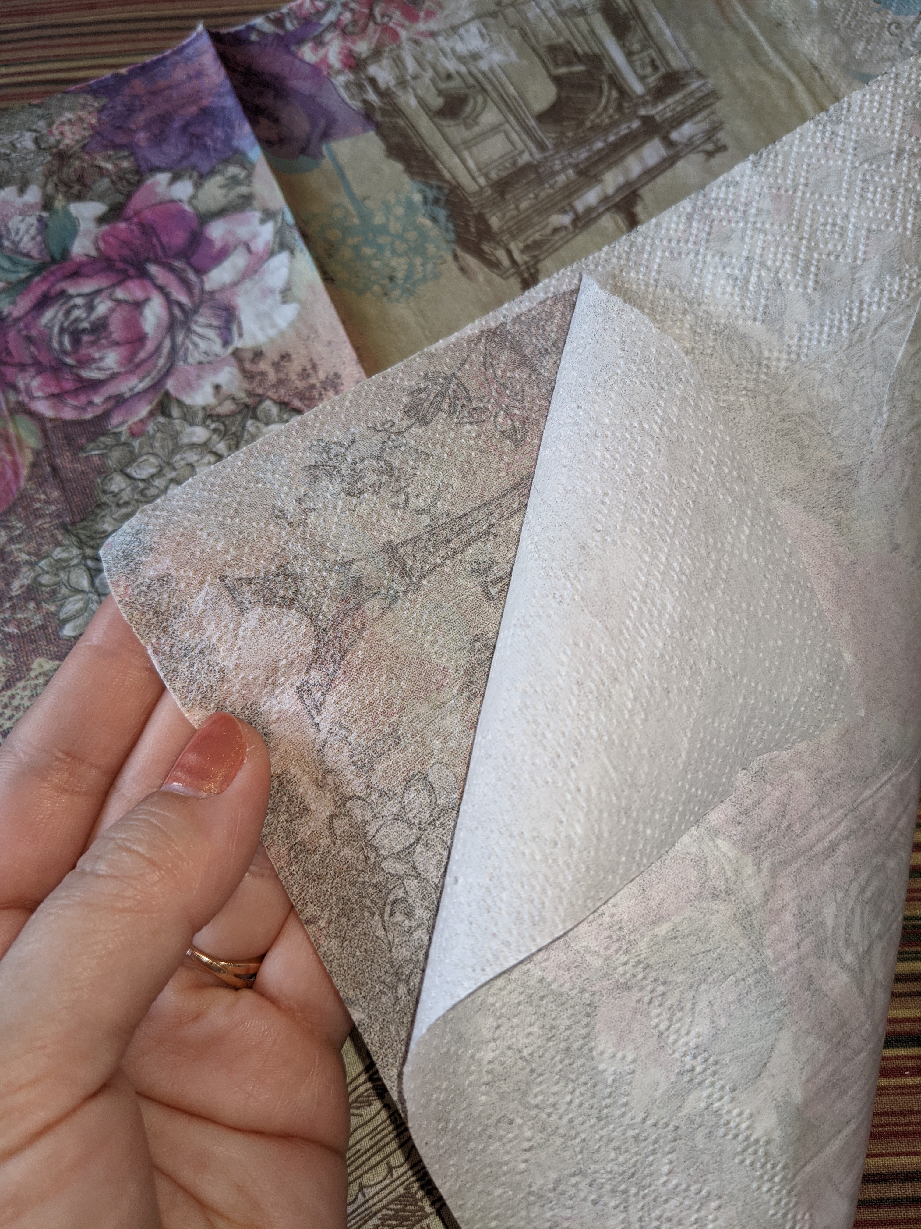 Step 2. Apply decoupage glue vertically and start attaching a napkin