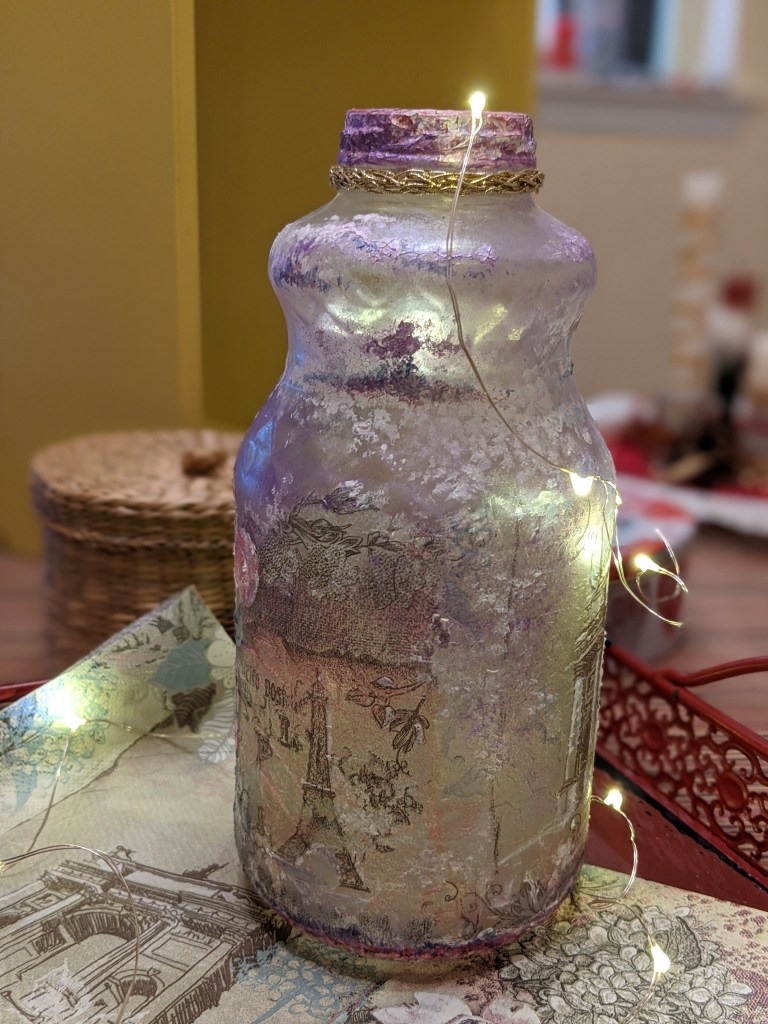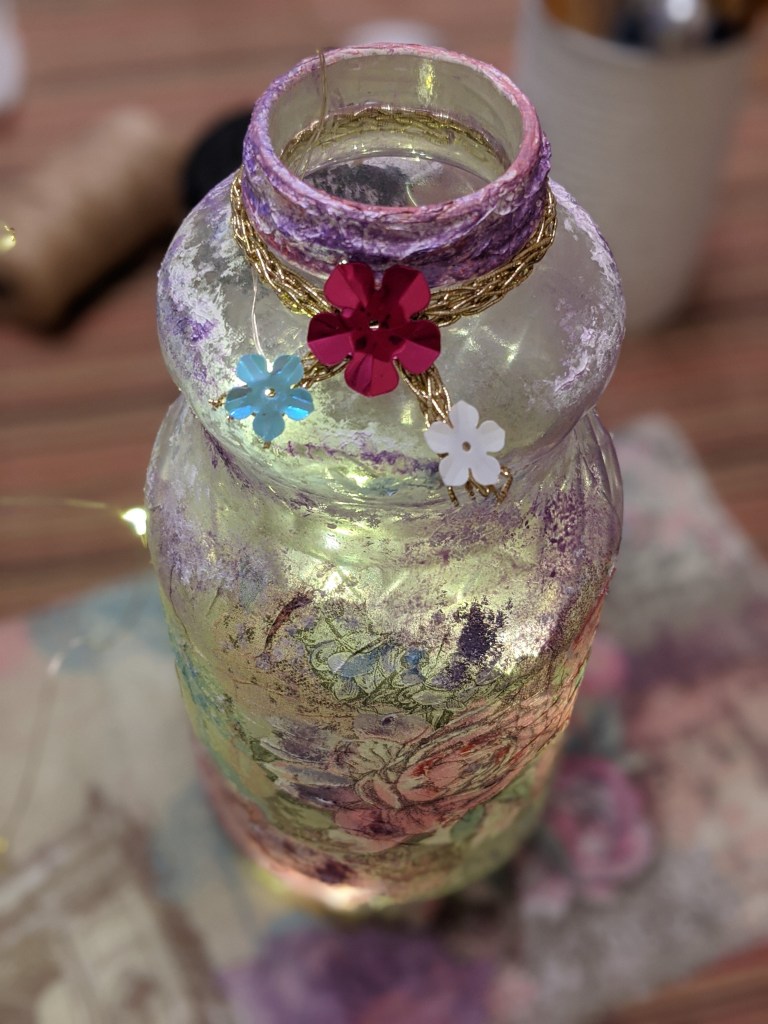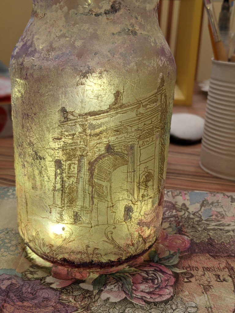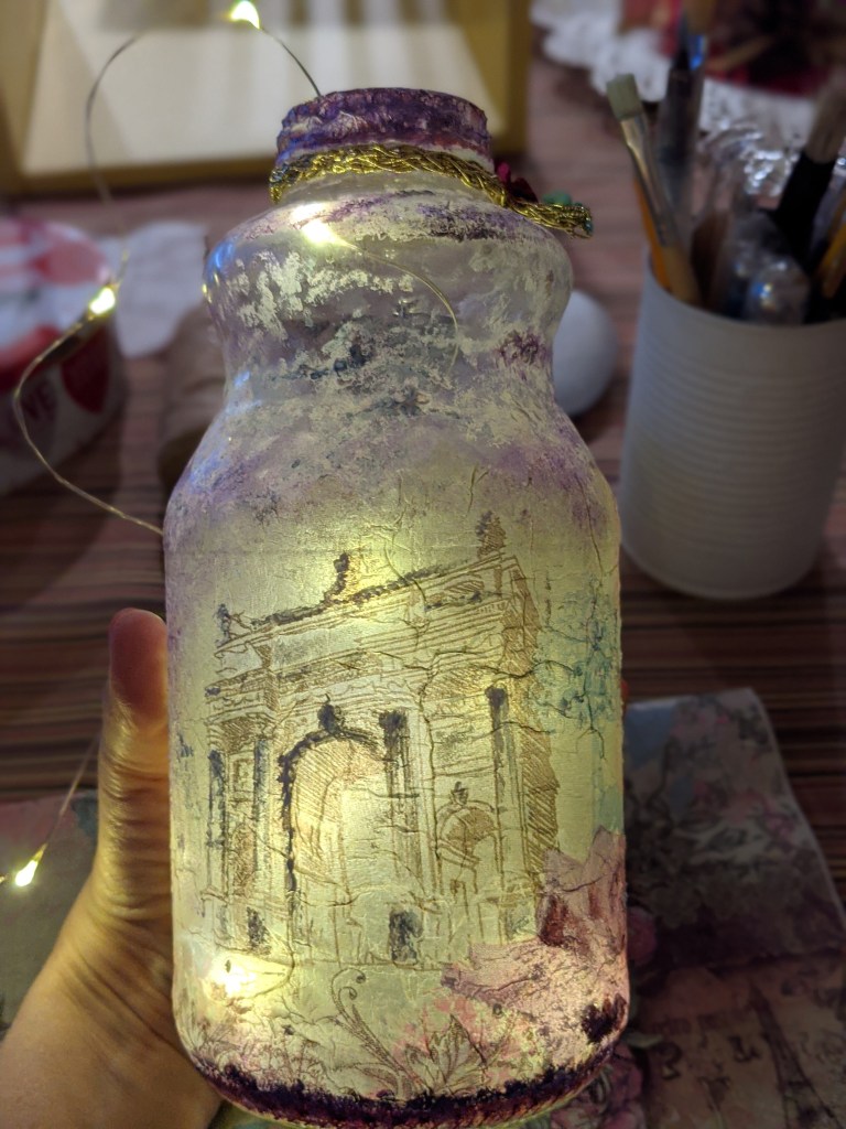 I didn’t cover the jar with a primer this time, as I needed it to be more transparent for inside light source. Please see the step by step instructions of how to do it and watch tutorials below.