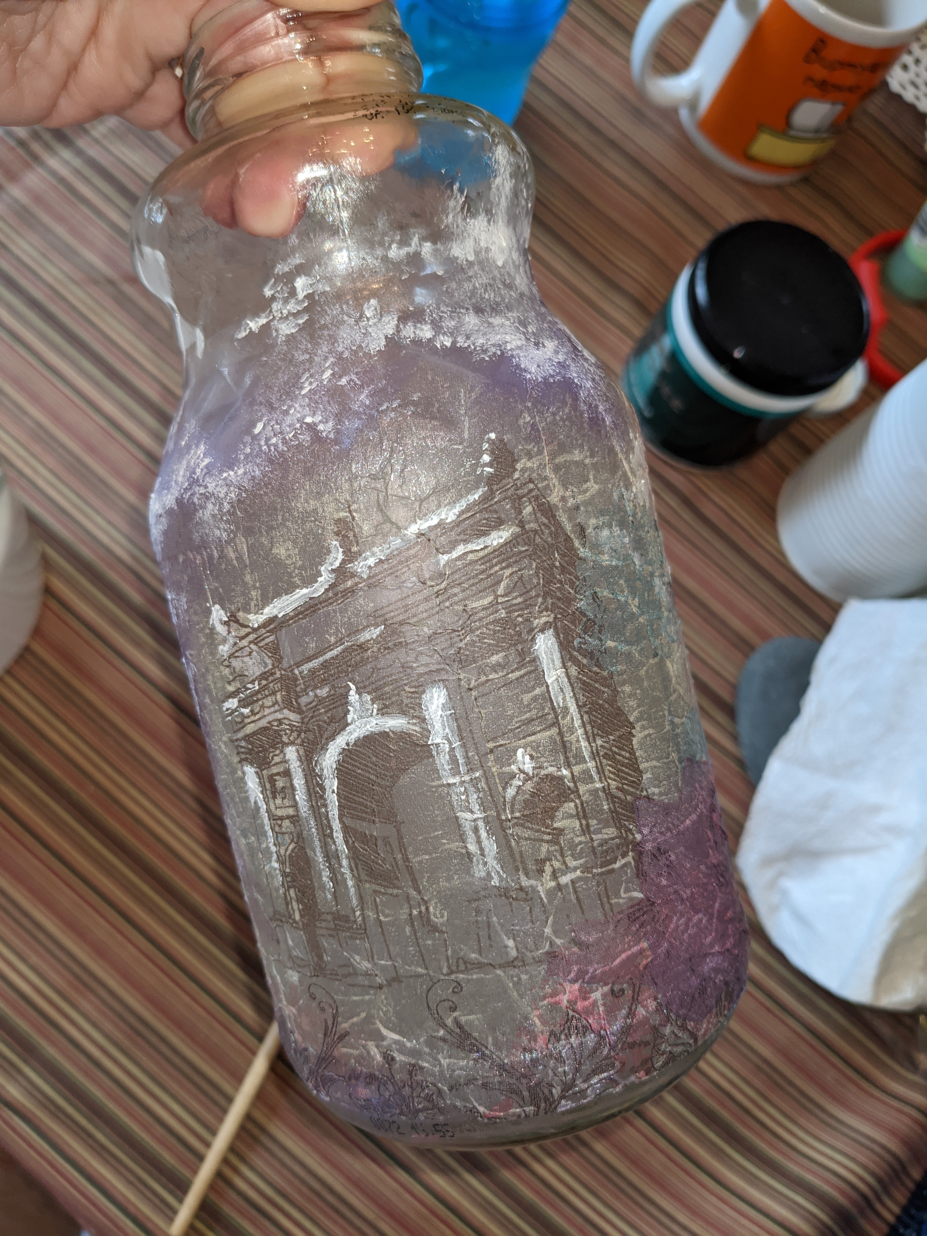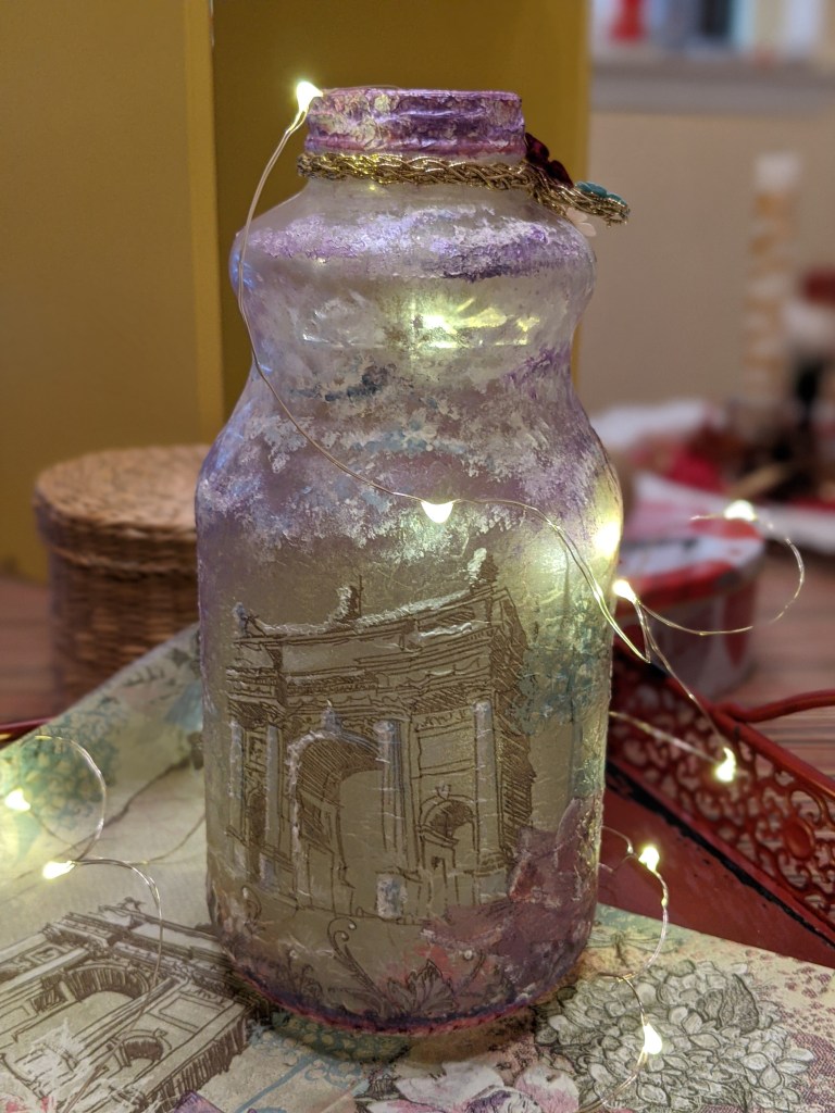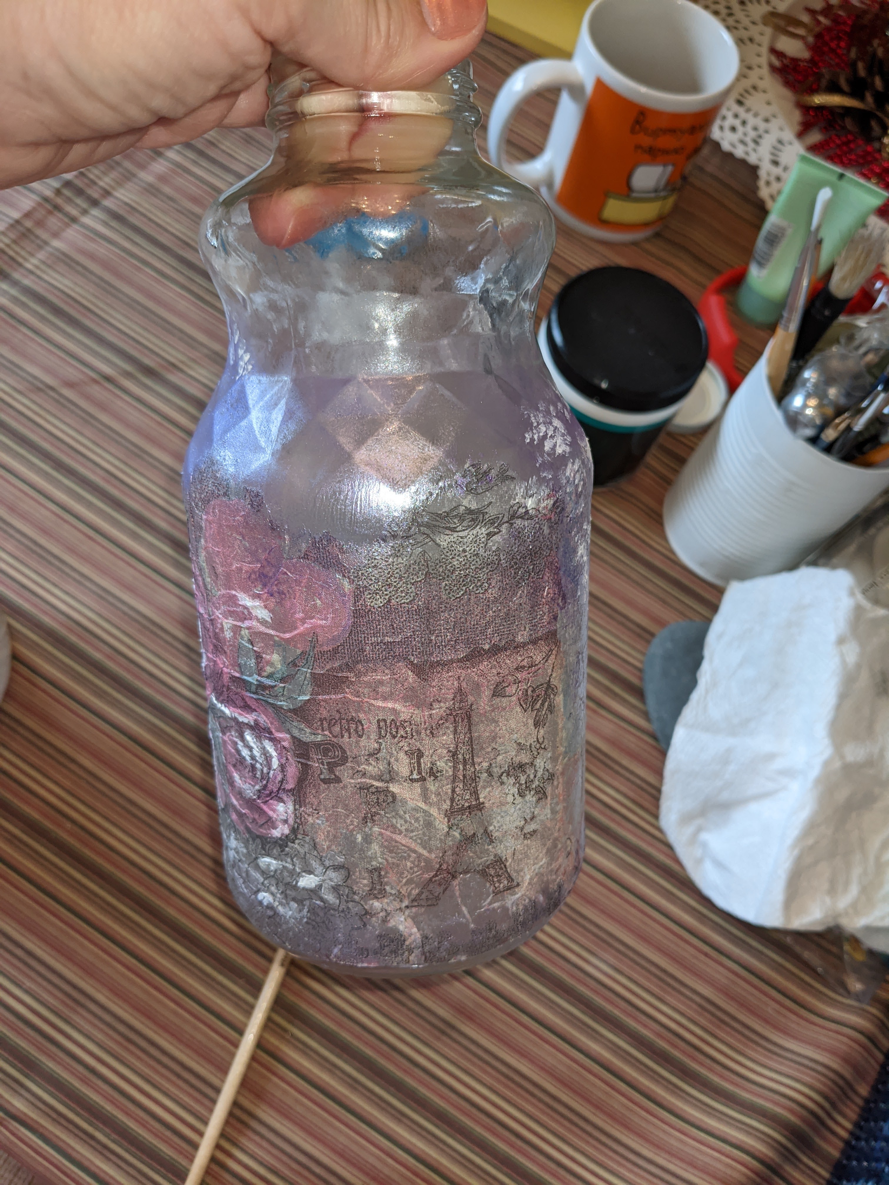 I didn’t cover the jar with a primer this time, as I needed it to be more transparent for inside light source. Please see the step by step instructions of how to do it and watch tutorials below.