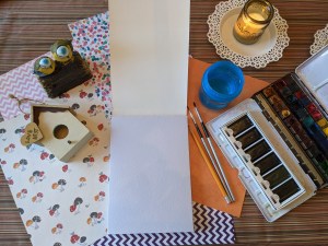 We used watercolors, painting paper pad, 2 brushes (#0 & #2), a jar with clear water and our imagination :).