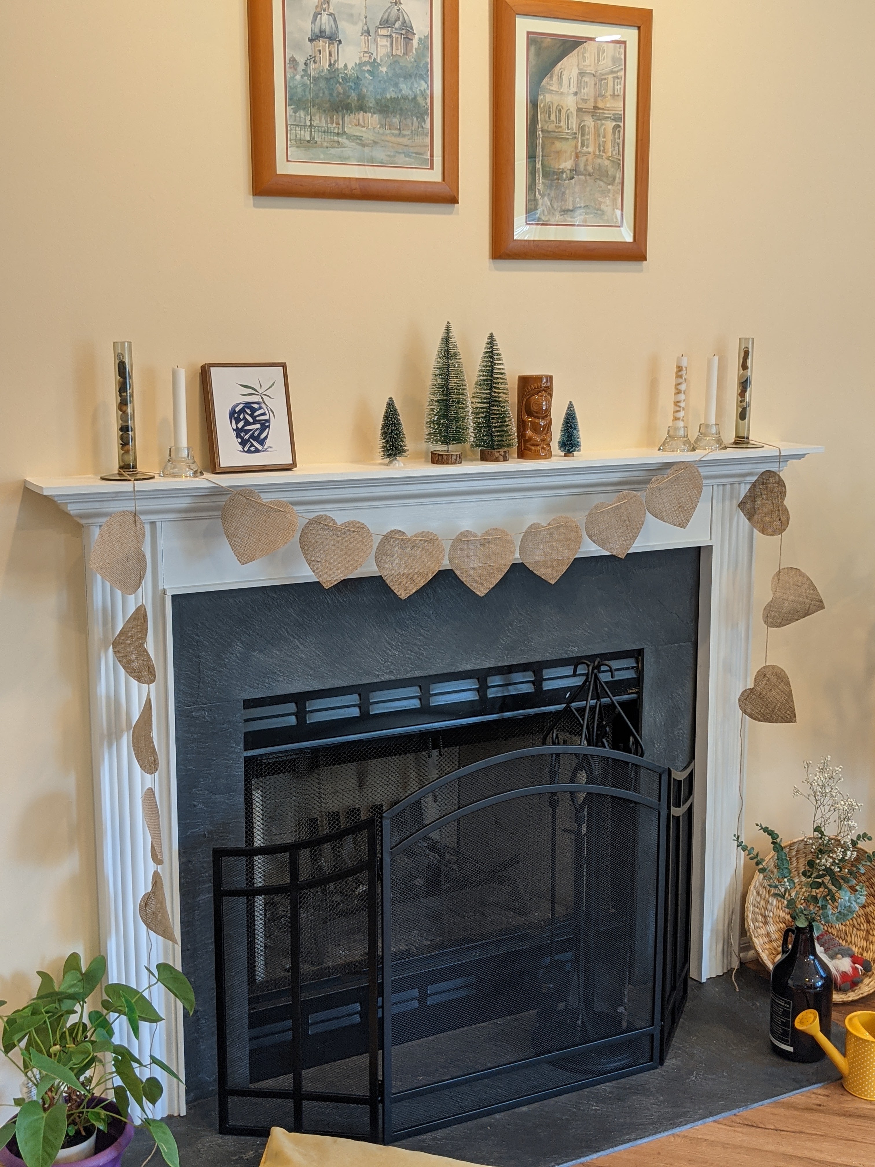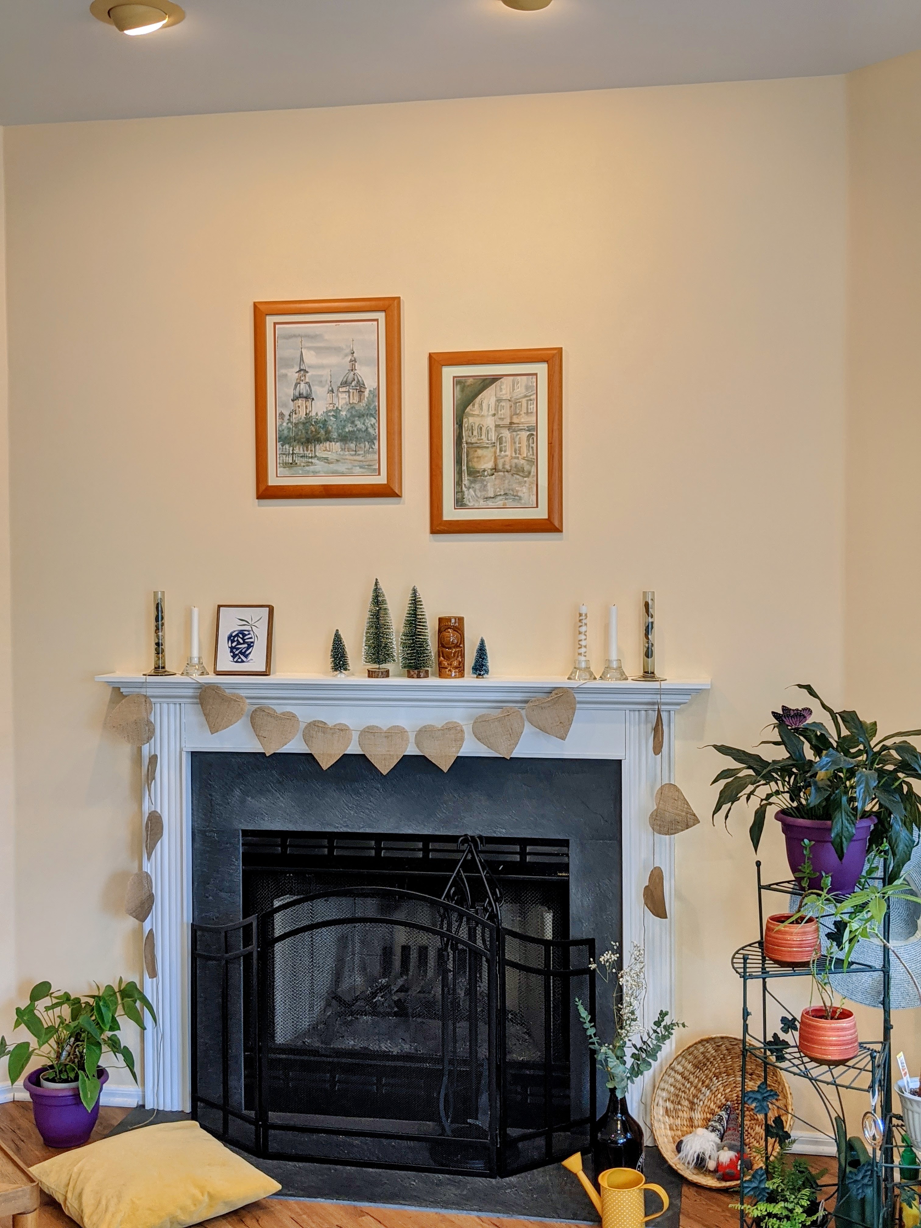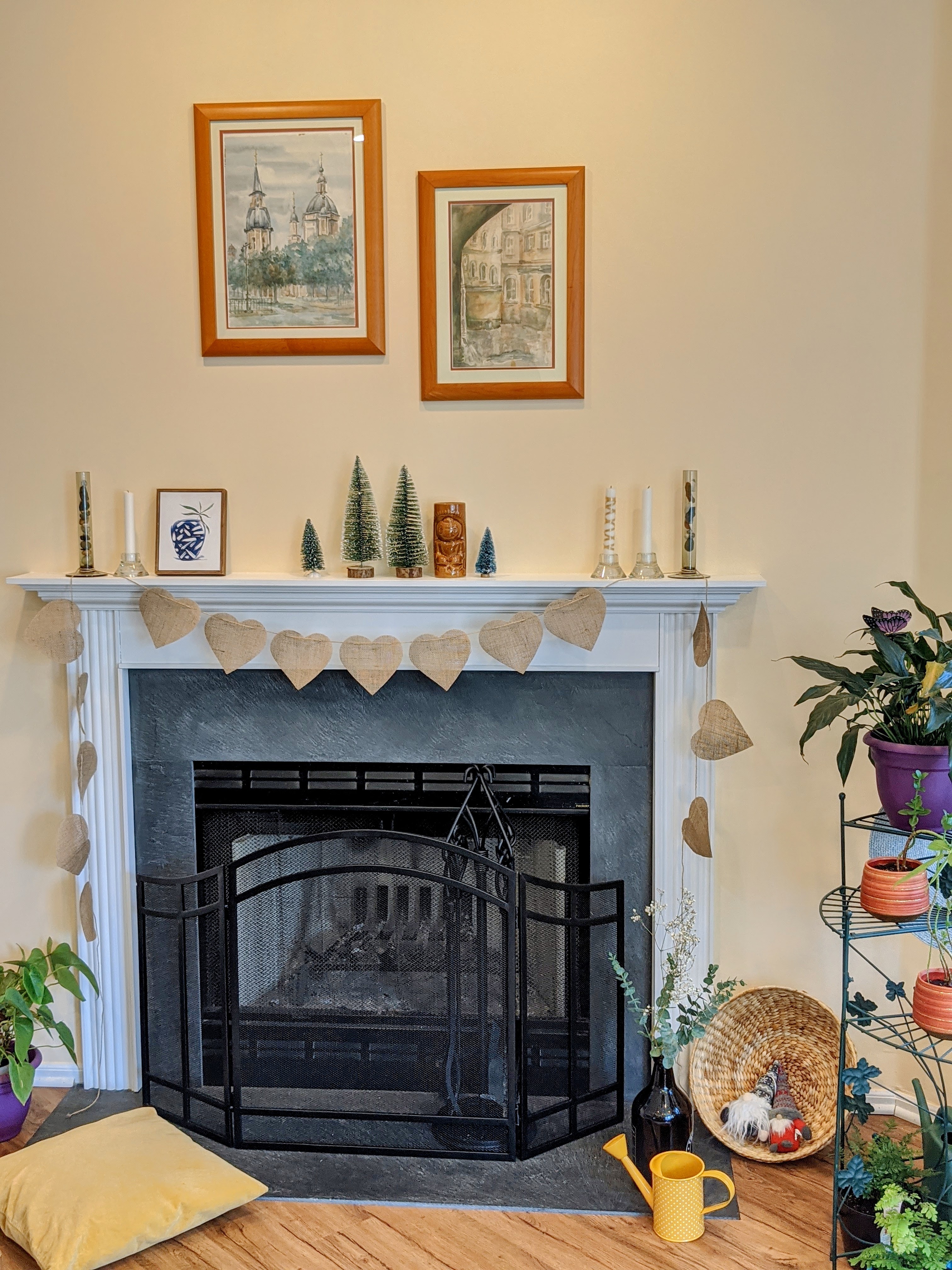 The next big theme holiday is Valentine’s Day and I have started my journey through all my boxes with décor elements that I already had. I have decided not to buy anything new this years and just play around with my little interior design palette. Plus we now have a wood fireplace, that, by itself, is a tremendous possibility for creativity and design experiments!