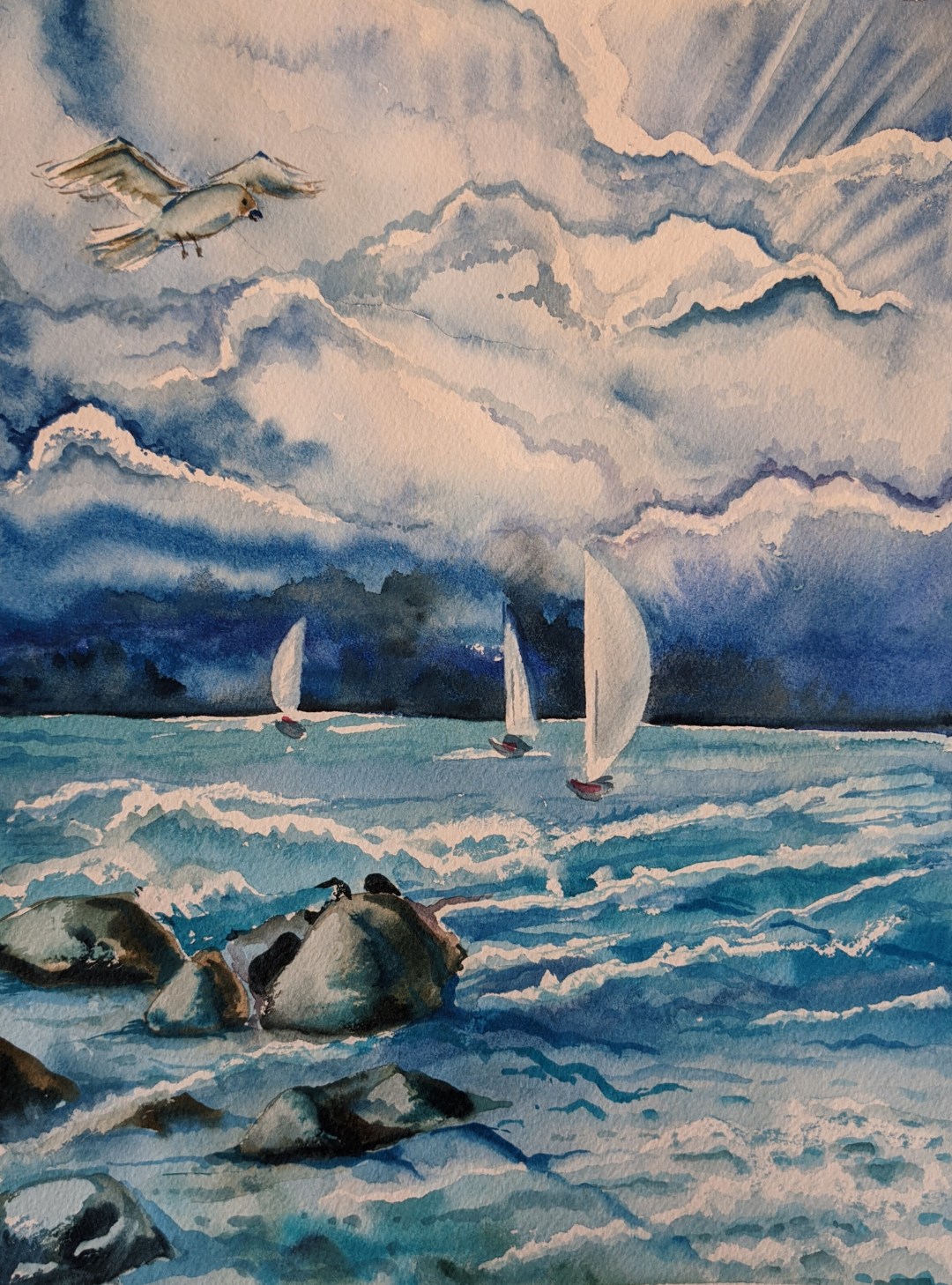 3. Wet-on-dry, once the drawing is dry adding colors to our white areas and blend it a little.