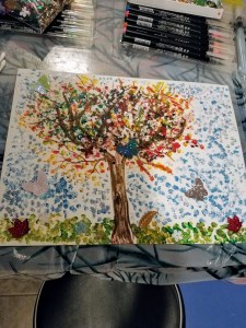 30 minute lesson for all ages, depending on grade level and design, to show how colors mix. We are using nature pictures and videos for inspiration and design. Kids are learning to explore their artistic skills in full. During warm months we can paint outside which is so much fun!