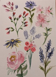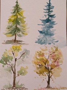 Water Color paint, Colored pencils, Soft Pastel Trees, flowers, Sky, Ocean life and nature around us