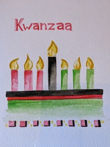 We do Christmas cards, Kwanzaa Art principles, Rosh Hashanah, Hanukkah, Sakura blooming, etc. cards to learn more about different countries and traditions around the world!
