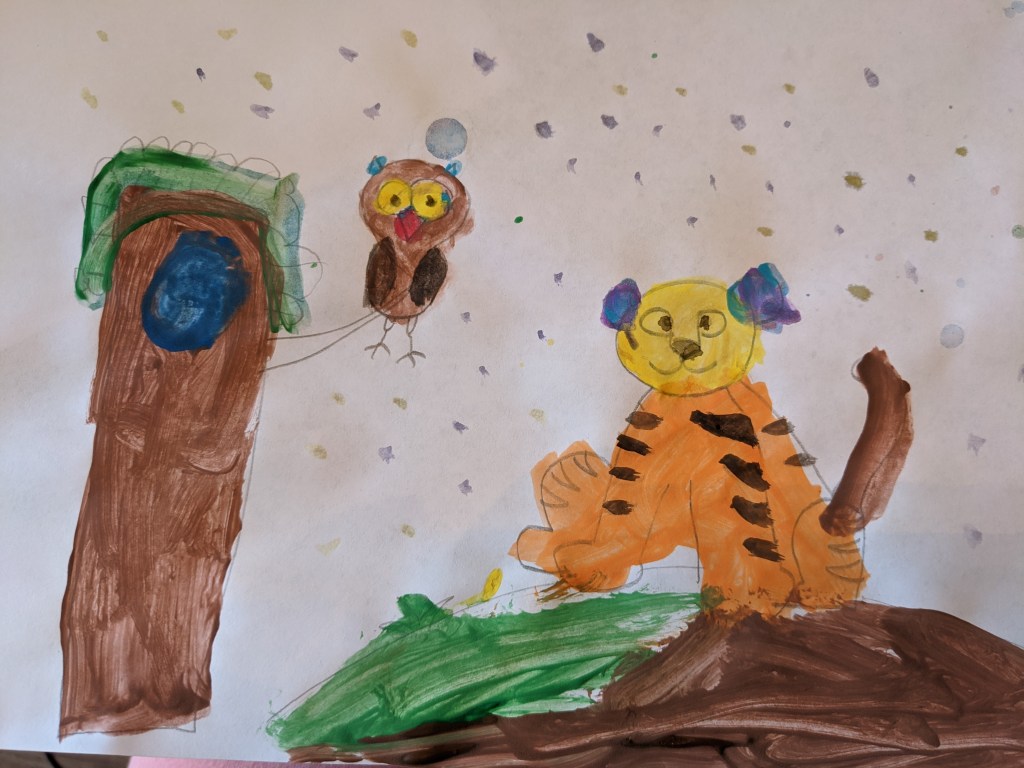Winnie-the-Pooh characters, watercolor – 5 years old